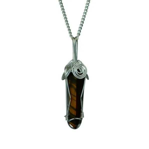 Tiger Eye Wire Wrapped Pencil Pendant