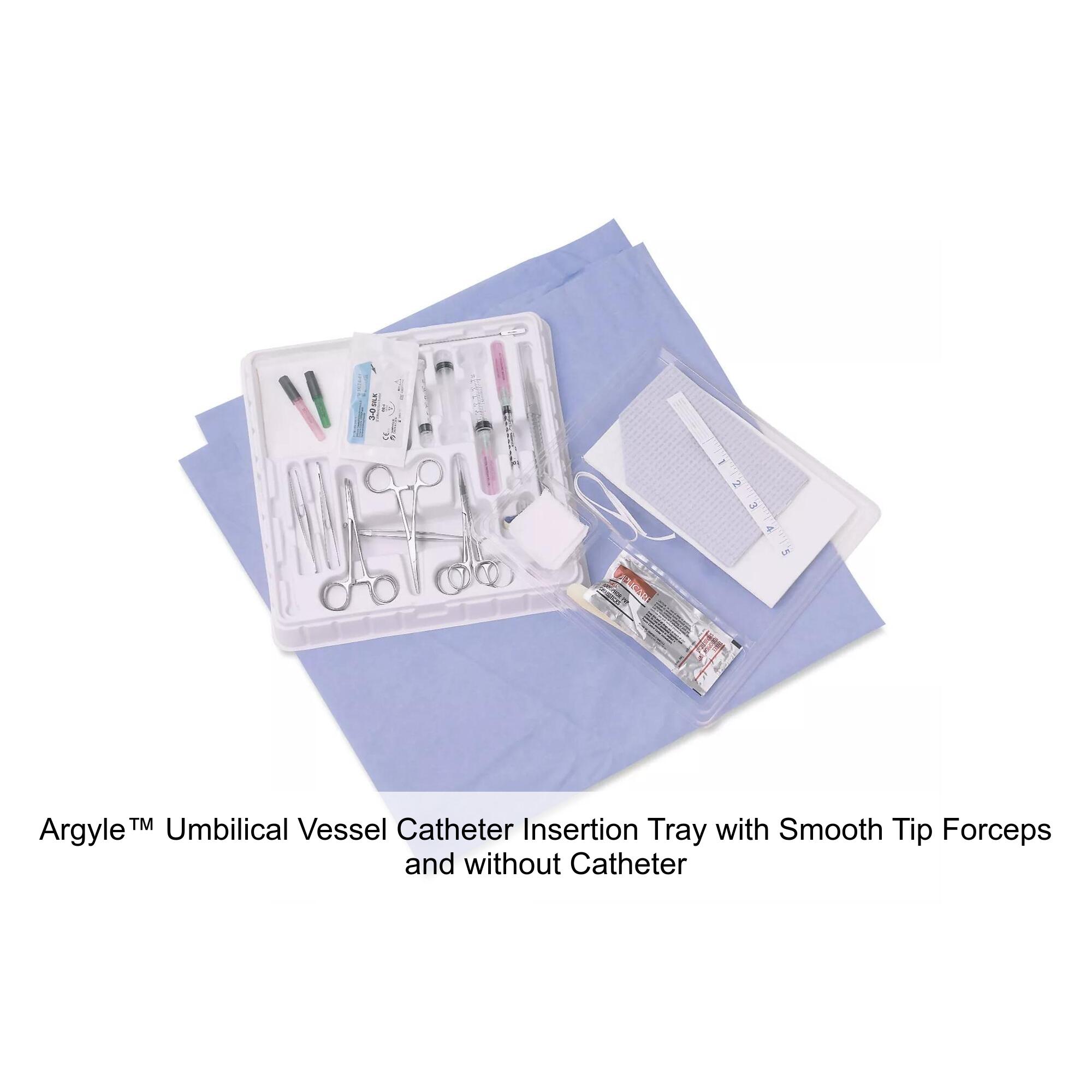 Argyle™ Umbilical Vessel Catheter Insertion Tray with Fine Tip Forceps and without Catheter
