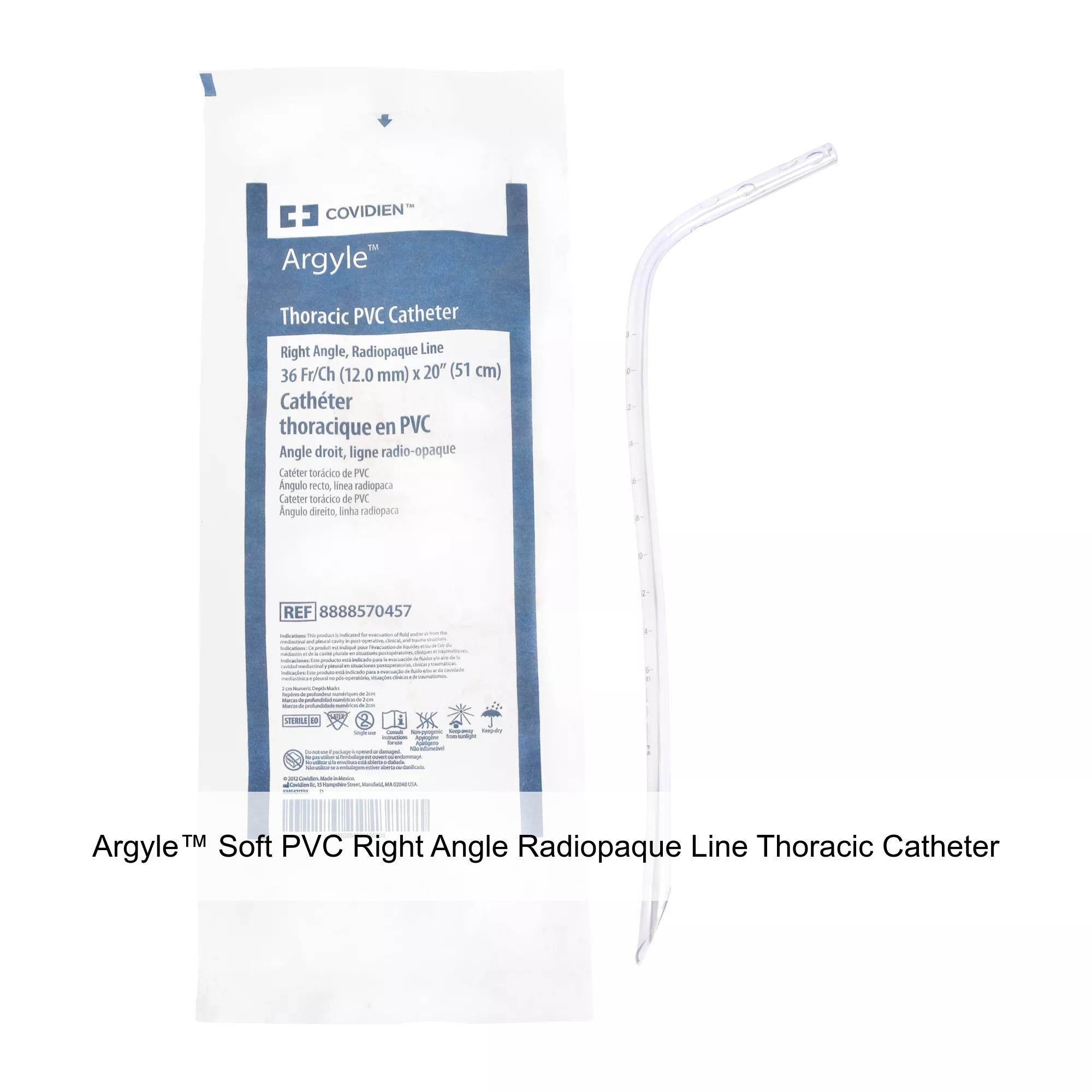 Argyle™ Soft PVC Right Angle Radiopaque Line Thoracic Catheter, 36FR, 20IN, 6 Eyelet, Rigid Escon Tube Package