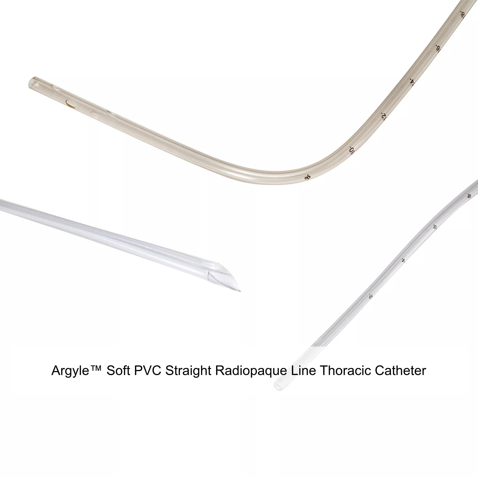 Argyle™ Soft PVC Straight Radiopaque Line Thoracic Catheter, 12FR, 20IN, 4 Eyelet, Rigid Escon Tube Package
